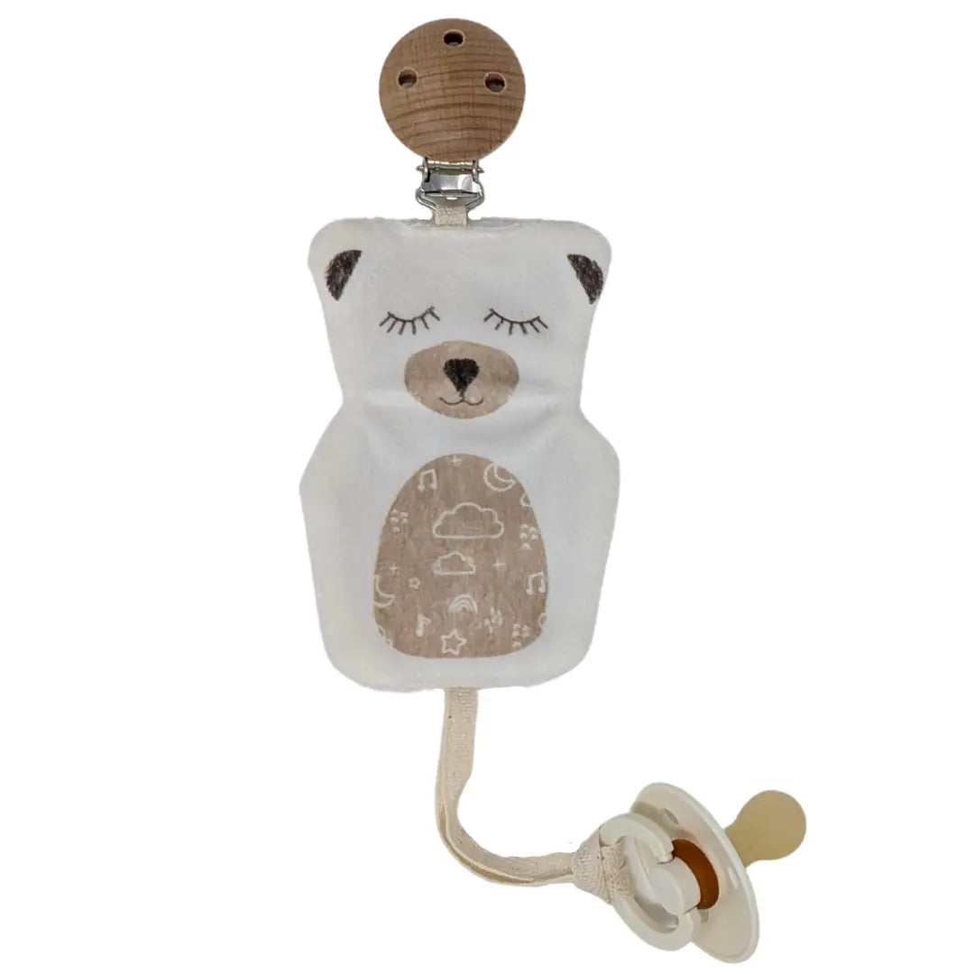 Lo adivinaste… ¡El clip para chupete de Béké-Bobo tiene, obviamente, la forma de un osito de peluche! Muy práctico y muy suave, hace un pequeño ruido de crujido cuando el osito está arrugado, ¡lo que encantará a tu hijo!